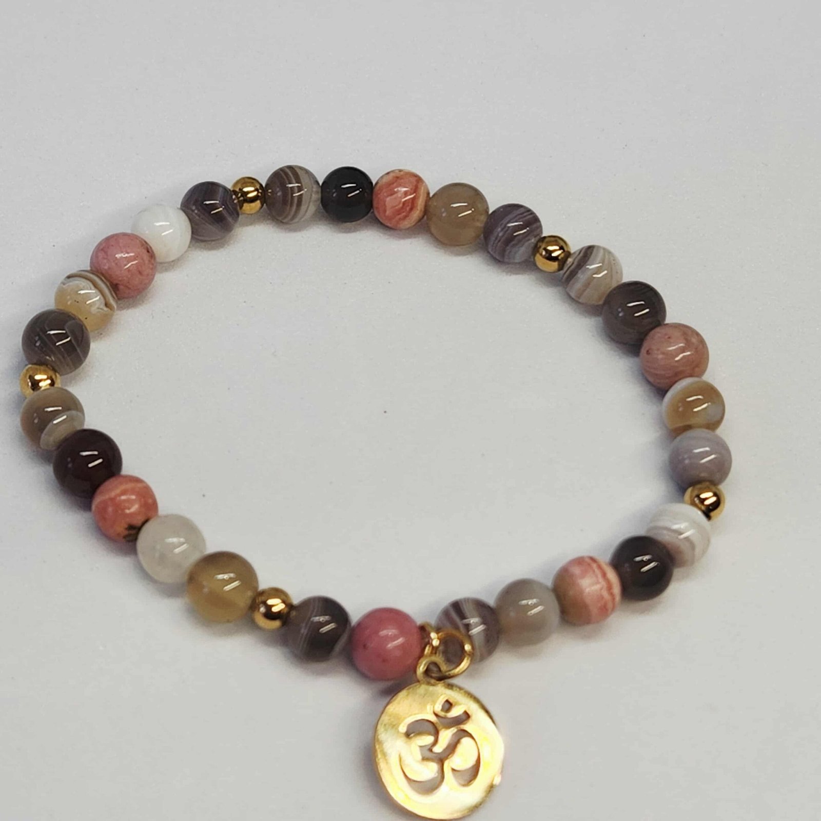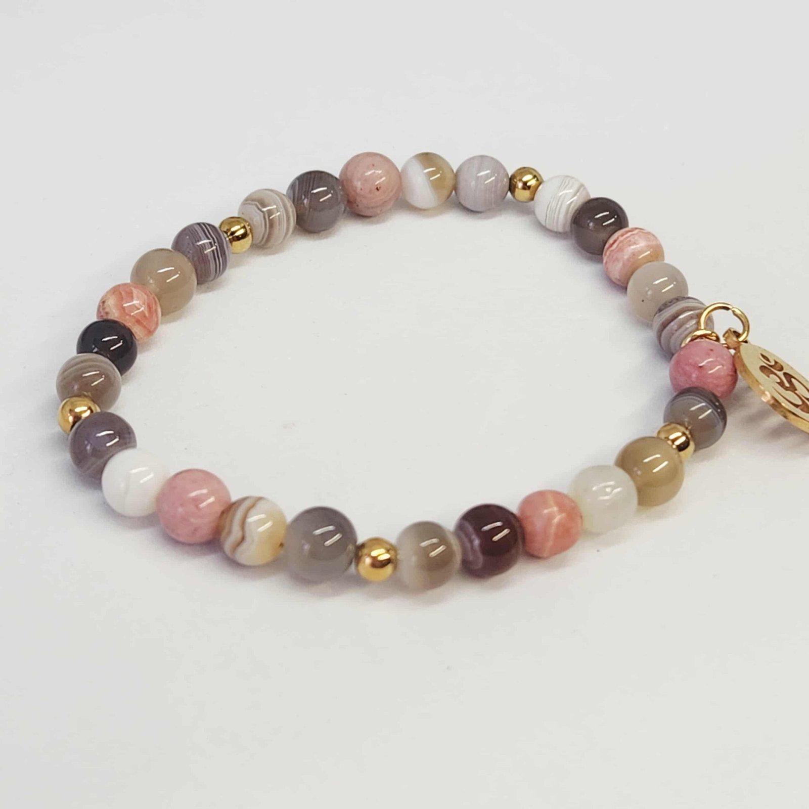 Pierres : Agate Botswana, Rhodochrosite, Rhodonite, Pierre de Lune