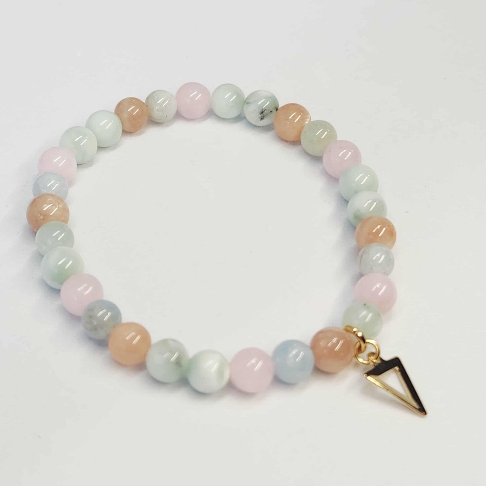 Pierres : Pierre de Lune pêche et verte ( Garniérite), Quartz Rose,