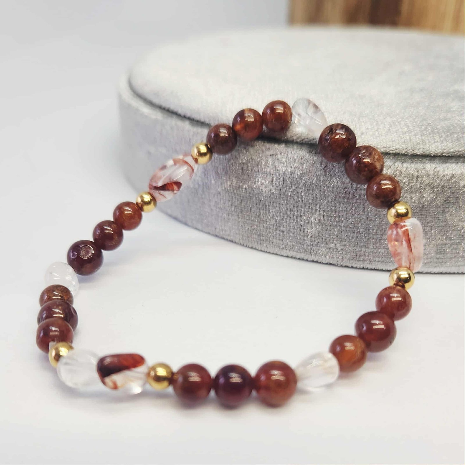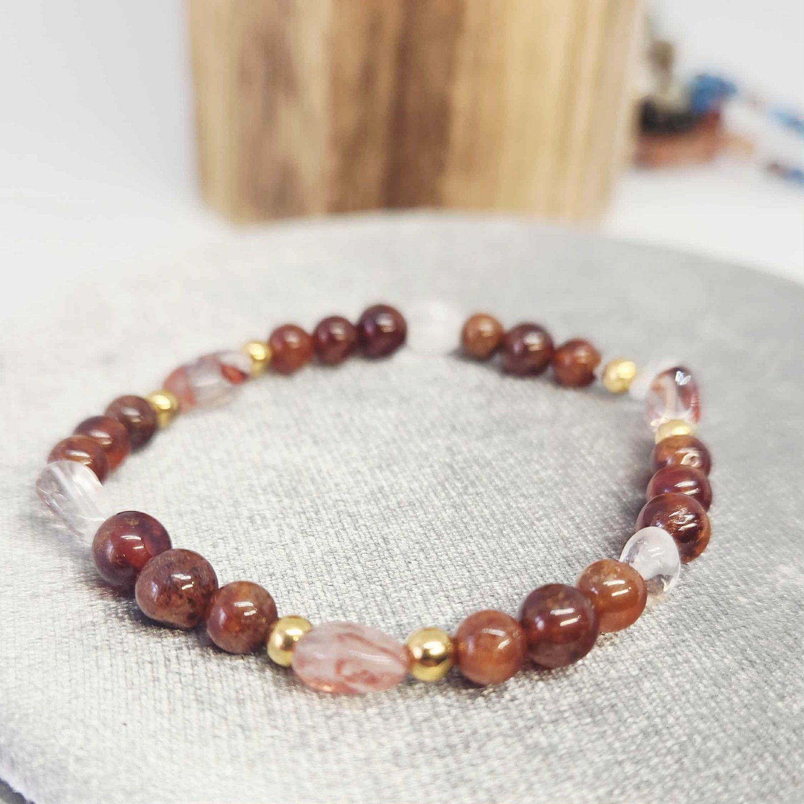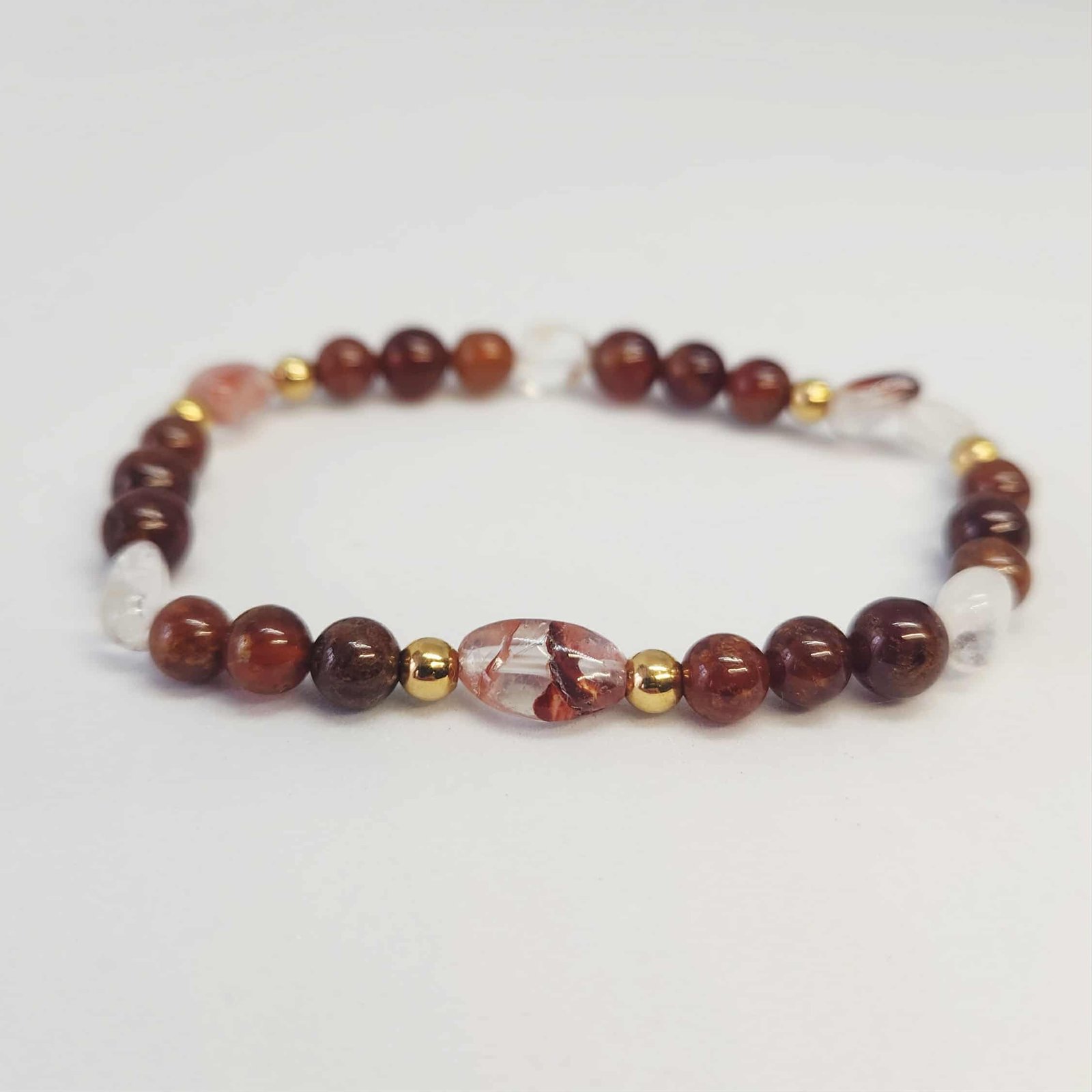 Ce bijou en GRENAT et en Quartz Hématoide booste le système immunitaire, il renforce le corps, donne de la force, de l’endurance et du courage.
